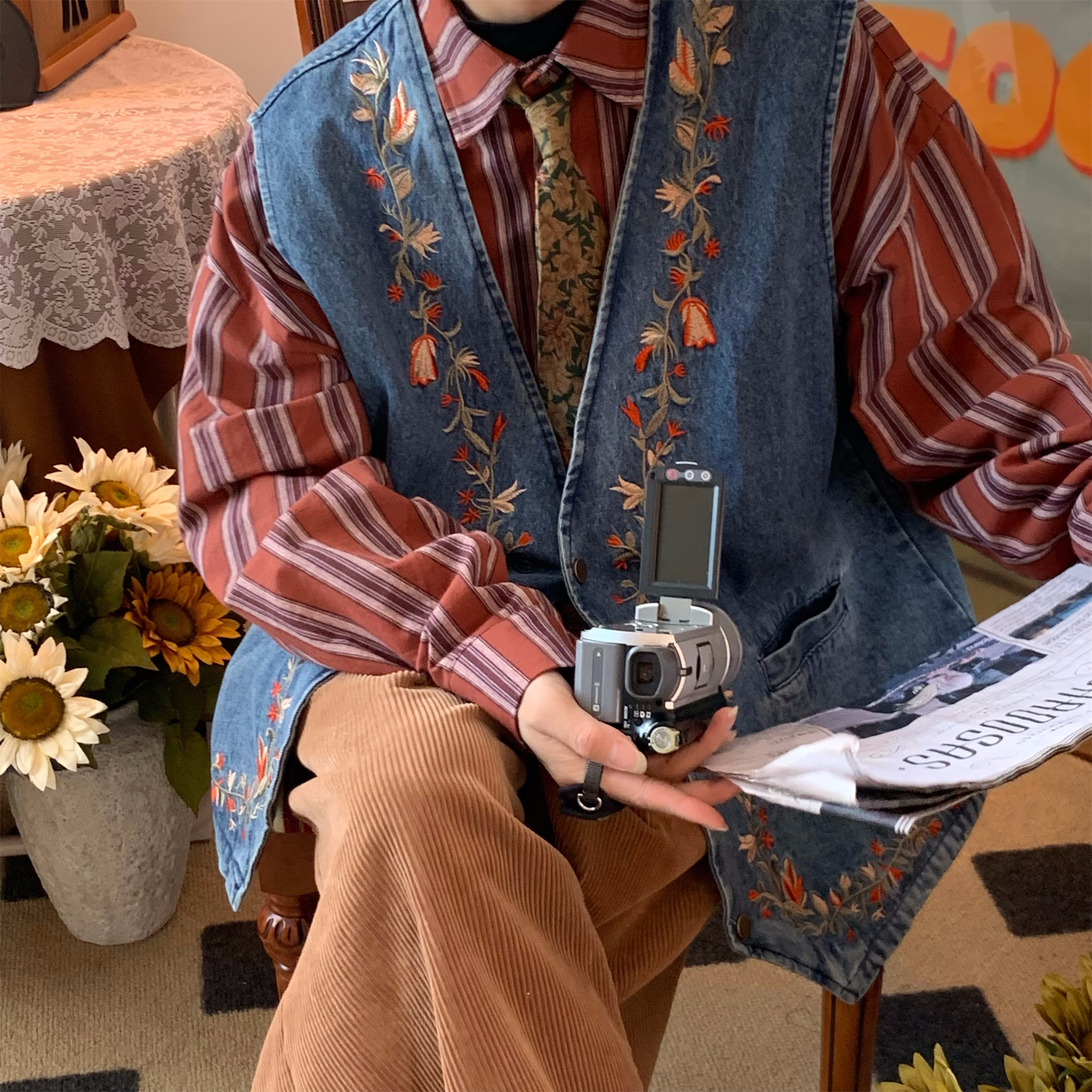 Vintage Washed Floral Embroidery V Retro Sleeveless Jacket Autumn, pired High-quality product featuring prom dresses, spring outfits, business casual outfits and more. Modern design that fits the latest trends. Premium materials ensure durability and comfort. Order now for special offers! Product designed with attention to every detail. Suitable for all occasions and personal styles.