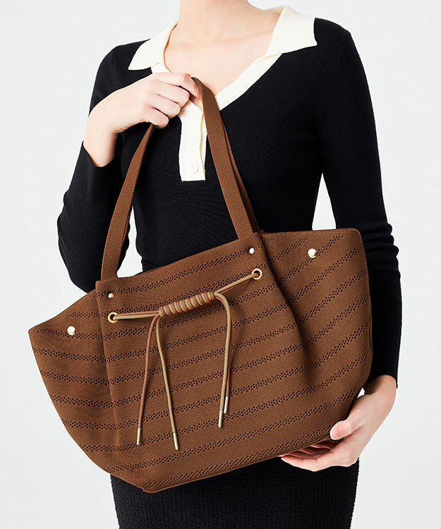 Women Brown Drawstring Striped Cotton Shoulder Bags