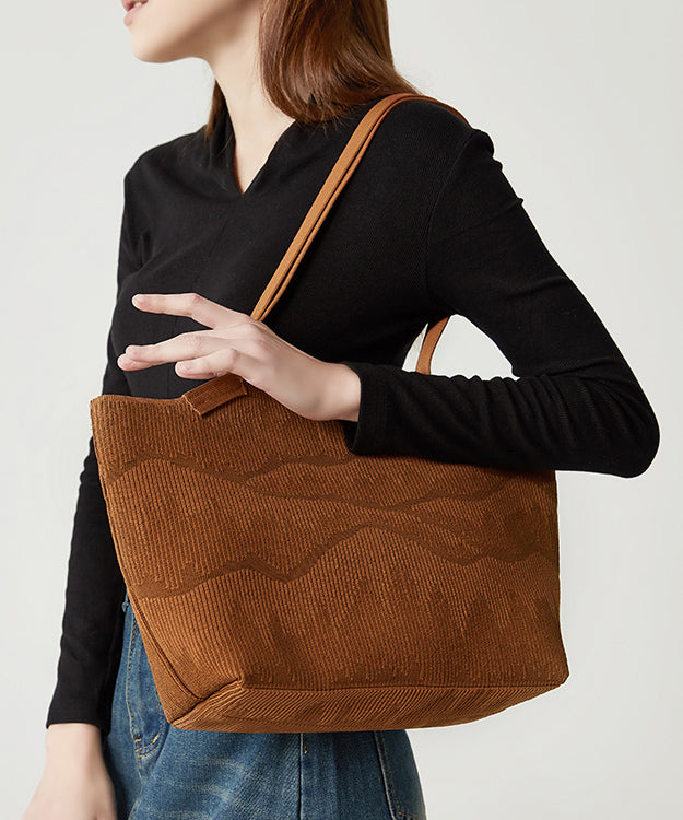 Women Brown Embossing Large Capacity Cotton Shoulder Bags