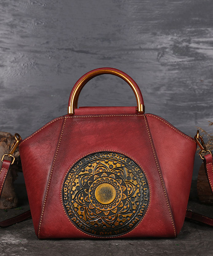 Women Brown The Sunflowers Embossing Calf Leather Tote Handbag