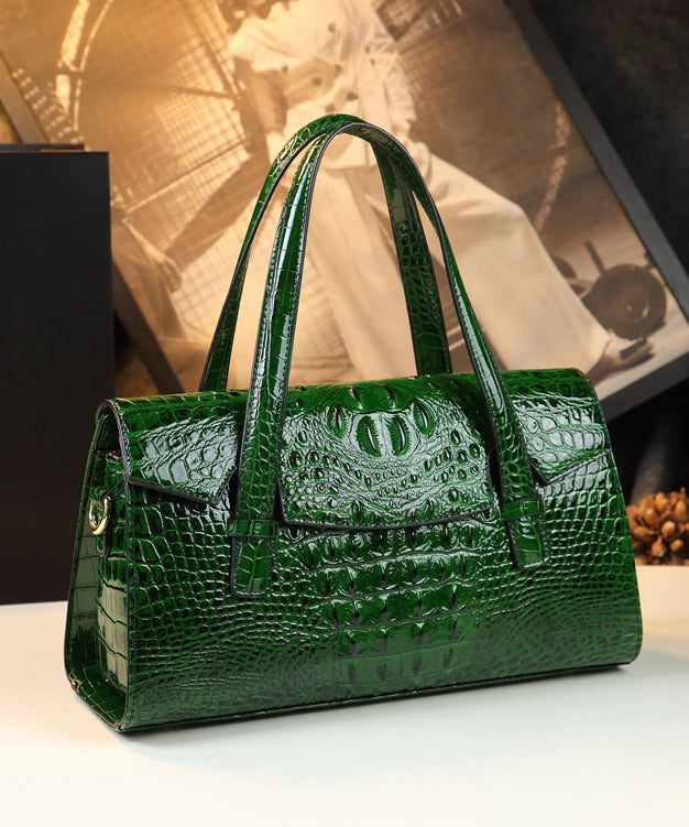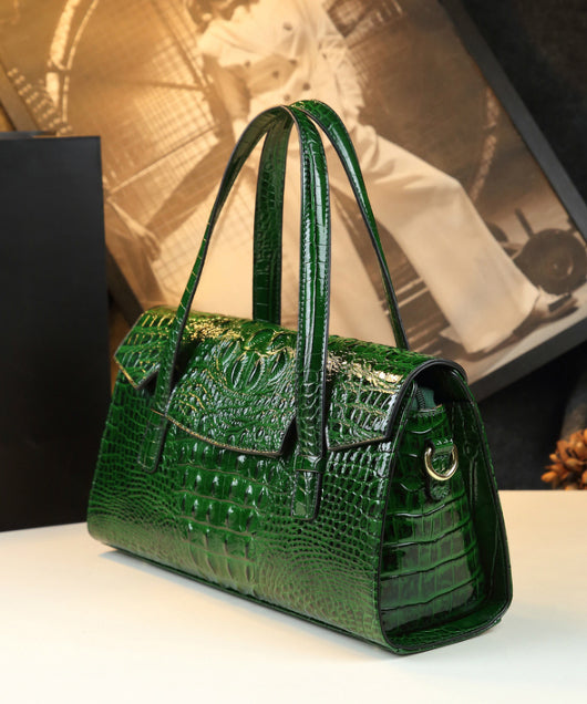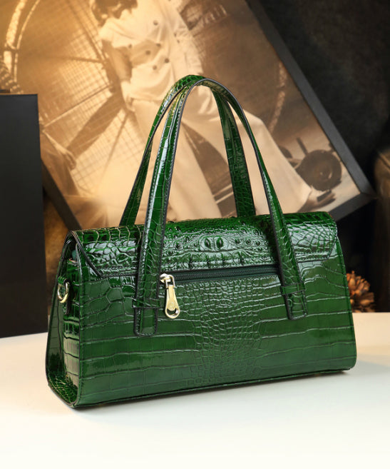 Women Green Alligator Pattern Durable Faux Leather Satchel Handbag
