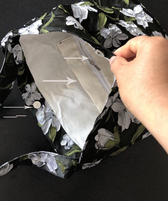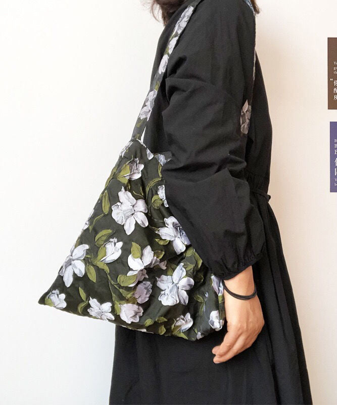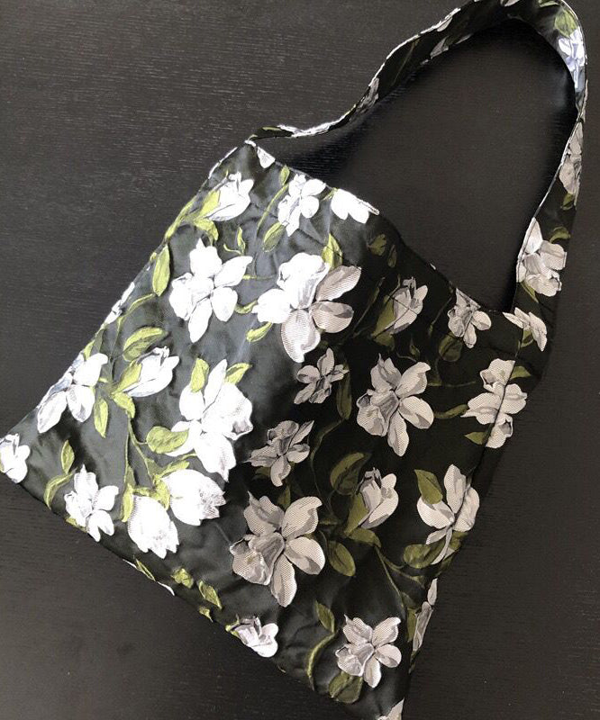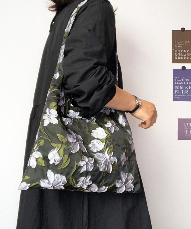 Women Green Gardenia Jacquard Nylon Satchel Handbag