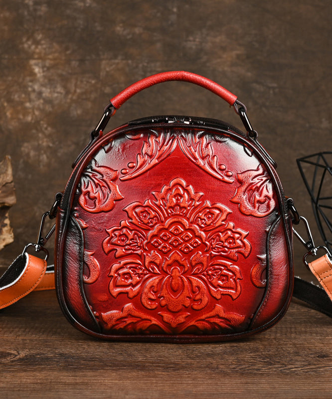 Women Retro Red Embossed Calf Leather Tote Messenger Bag