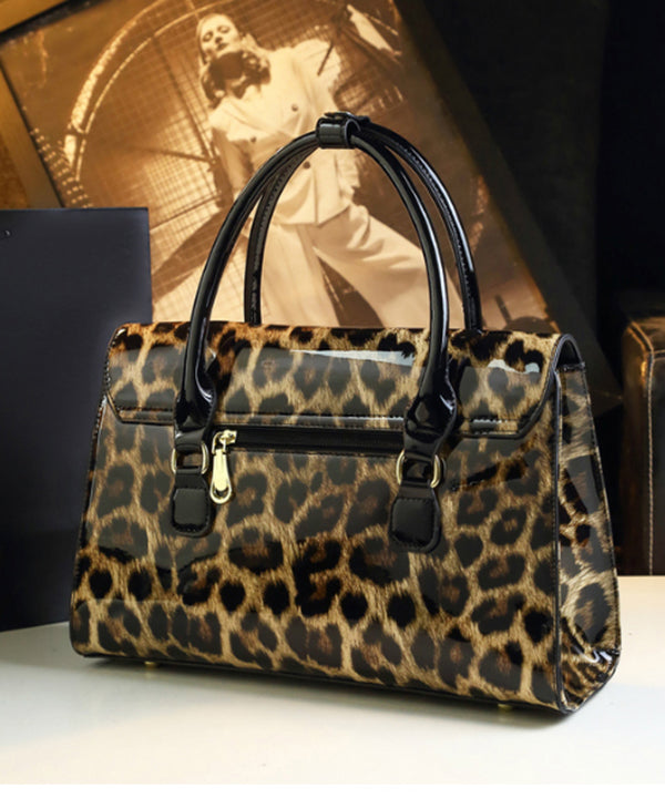 Women Stylish Leopard Embossed Calf Leather Tote Handbag