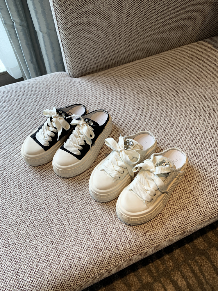 Women Thick Soled Lace Up Canvas Slippers Casual Half Drag Sals Spring High-quality product featuring prom dresses, spring outfits, business casual outfits and more. Modern design that fits the latest trends. Premium materials ensure durability and comfort. Order now for special offers! Product designed with attention to every detail. Suitable for all occasions and personal styles.
