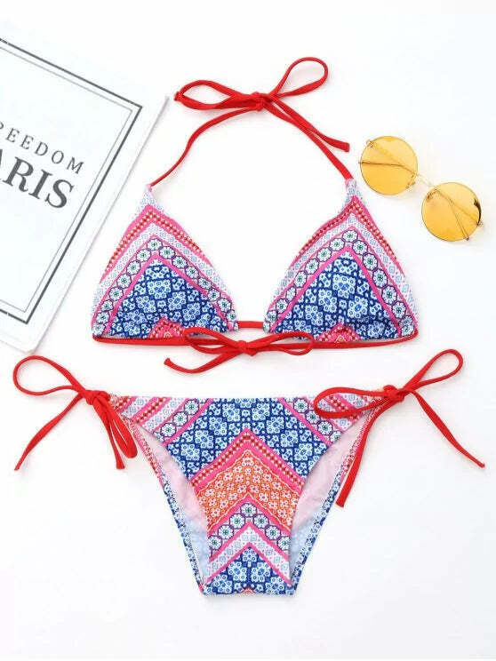 Casual outfits Y2K Printed Halter Bikini Set String Bottoms High-quality product featuring prom dresses, spring outfits, business casual outfits and more. Modern design that fits the latest trends. Premium materials ensure durability and comfort. Order now for special offers! Product designed with attention to every detail. Suitable for all occasions and personal styles.