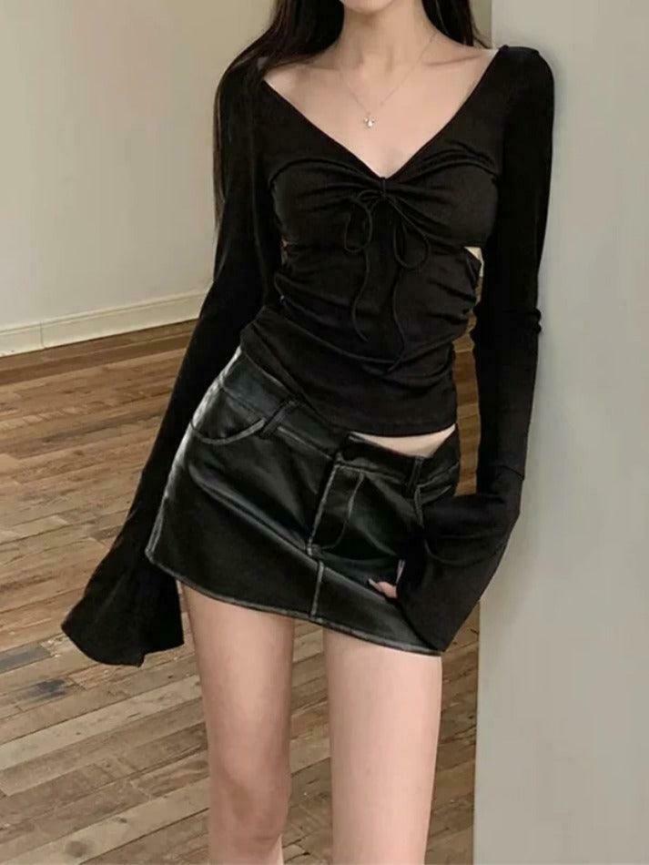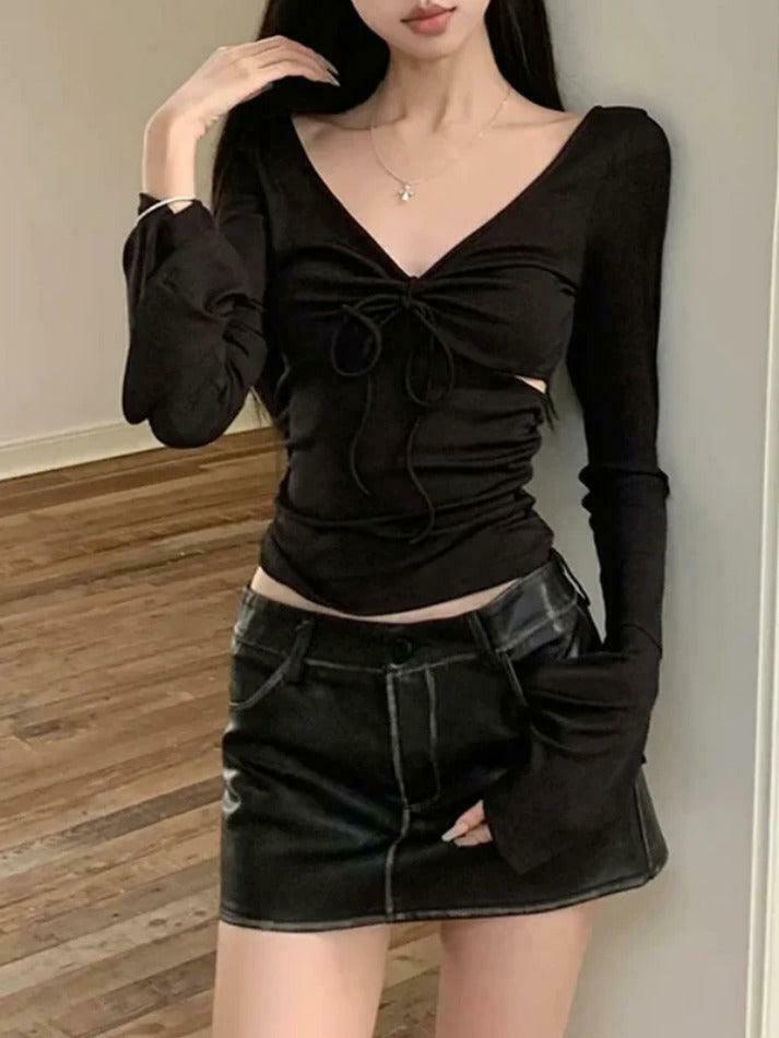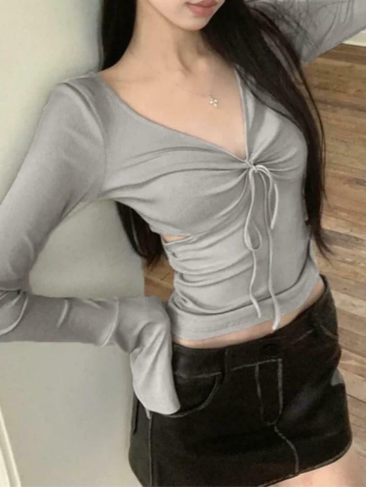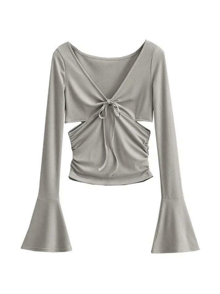 Casual Outfits Y2k Solid V- Neck Side Cutout Trumpet Sleeve – Outfit Ideas High-quality product featuring prom dresses, spring outfits, business casual outfits and more. Modern design that fits the latest trends. Premium materials ensure durability and comfort. Order now for special offers! Product designed with attention to every detail. Suitable for all occasions and personal styles.