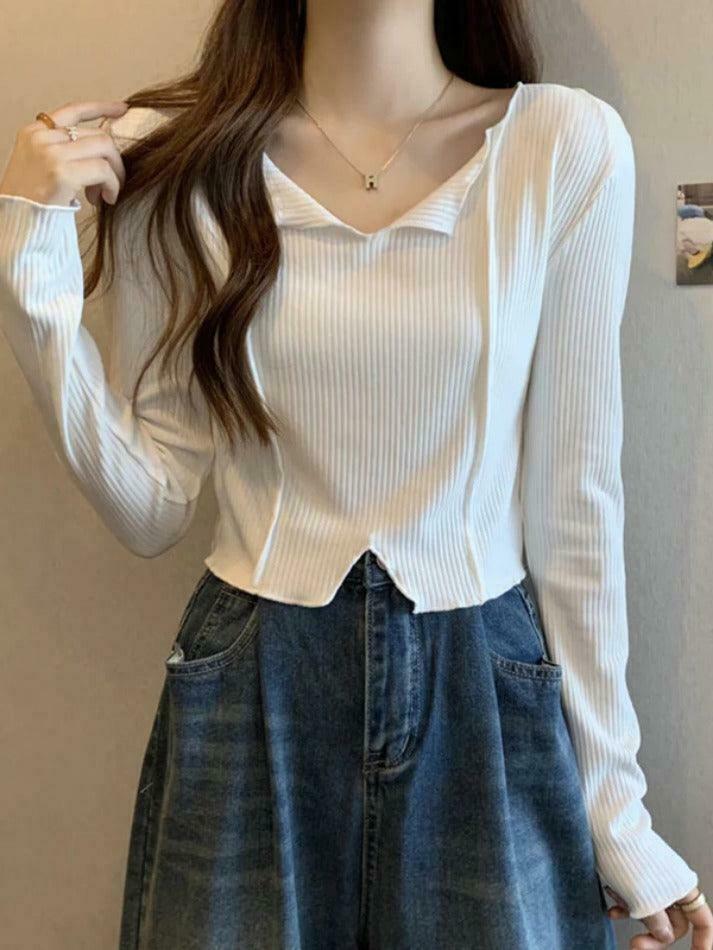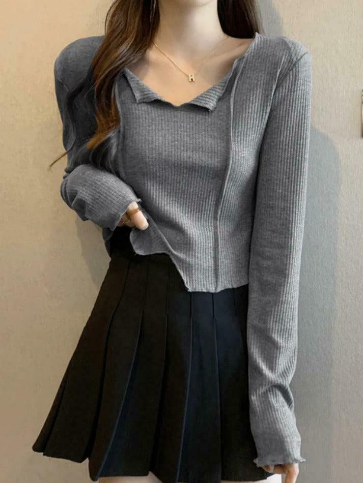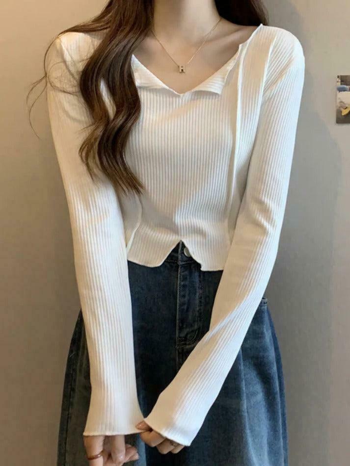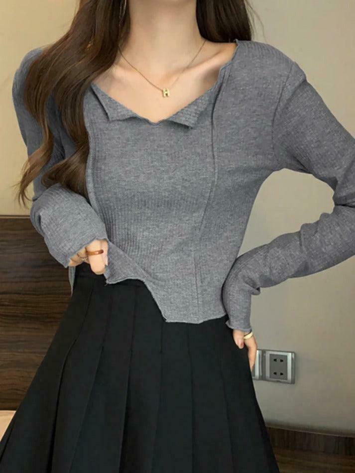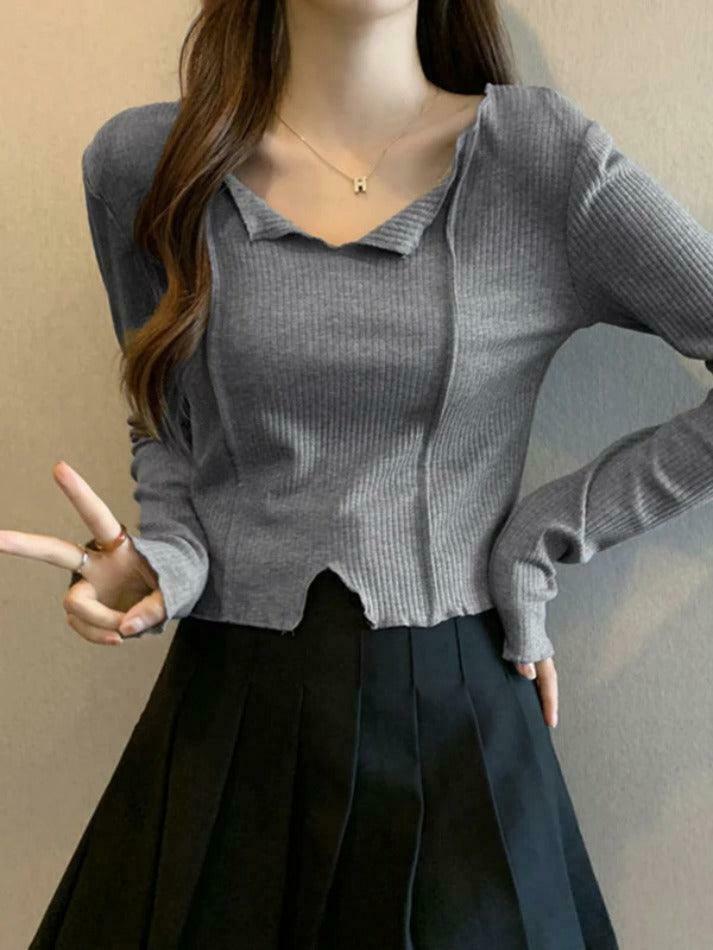 Casual Outfits Y2k Solid V- Neck Slit Hem Long Sleeve Knit T – Outfit Ideas High-quality product featuring prom dresses, spring outfits, business casual outfits and more. Modern design that fits the latest trends. Premium materials ensure durability and comfort. Order now for special offers! Product designed with attention to every detail. Suitable for all occasions and personal styles.