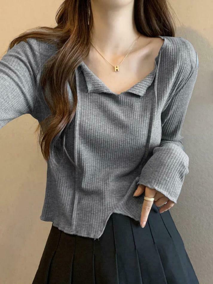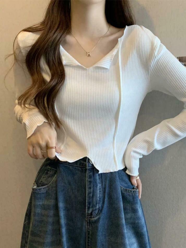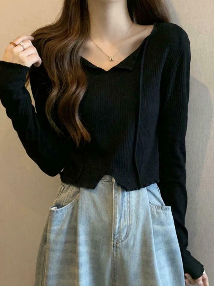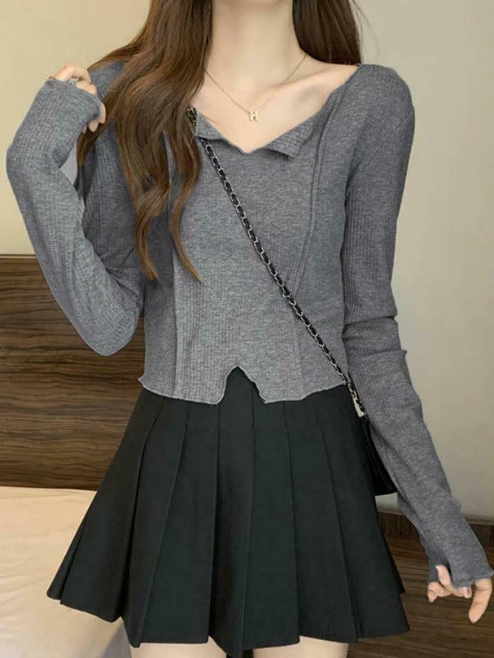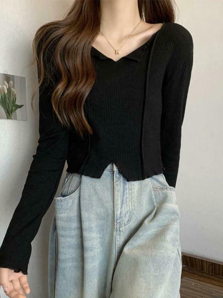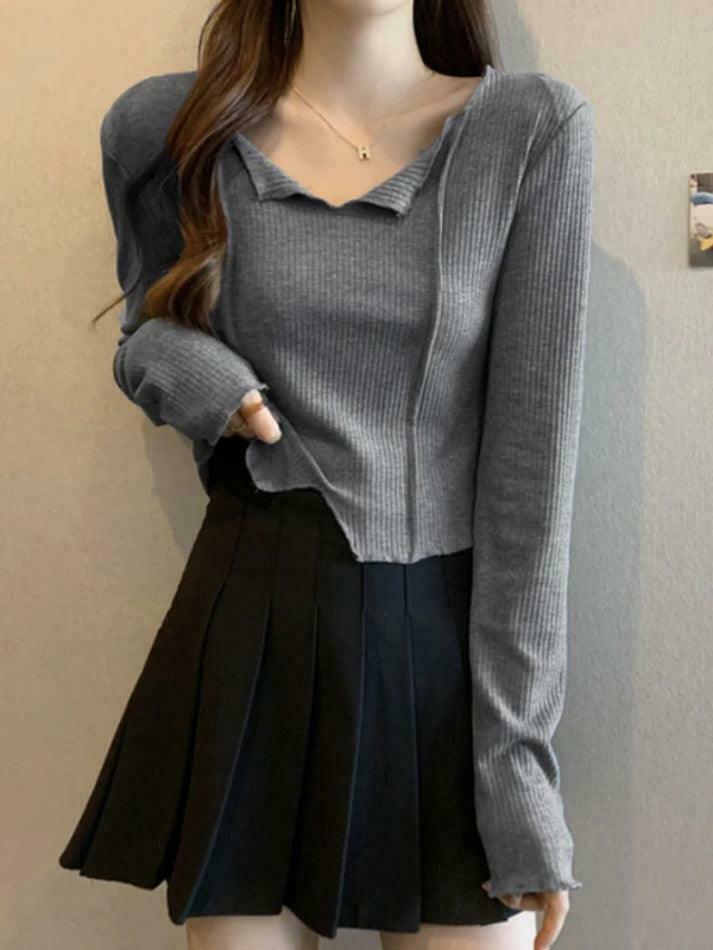 Casual Outfits Y2k Solid V- Neck Slit Hem Long Sleeve Knit T – Outfit Ideas High-quality product featuring prom dresses, spring outfits, business casual outfits and more. Modern design that fits the latest trends. Premium materials ensure durability and comfort. Order now for special offers! Product designed with attention to every detail. Suitable for all occasions and personal styles.