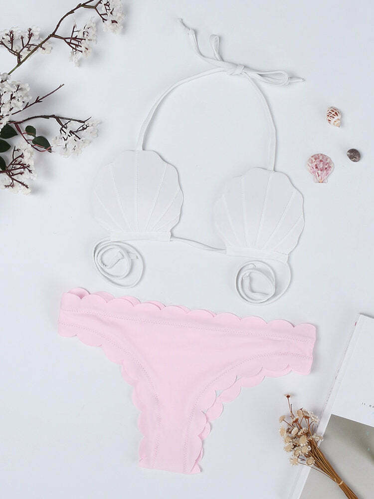 Casual Outfits Y2k White Shell Wave Halter String Backless B – Outfit Ideas