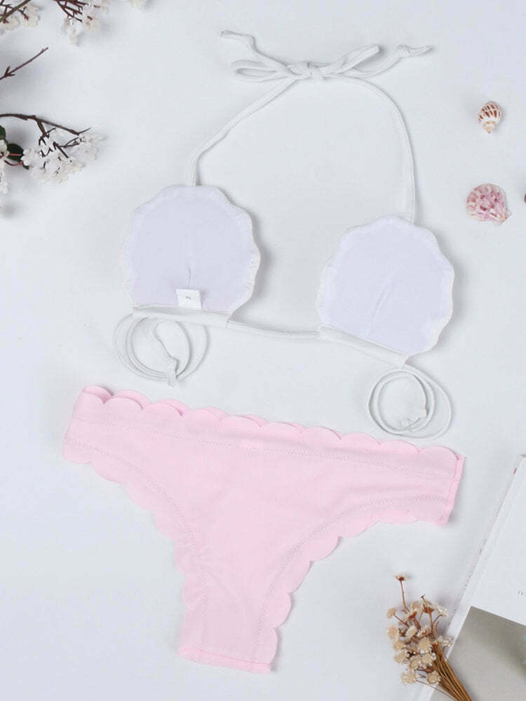 Casual outfits Y2K White Shell Wave Halter String Backless Bikini Swimsuit High-quality product featuring prom dresses, spring outfits, business casual outfits and more. Modern design that fits the latest trends. Premium materials ensure durability and comfort. Order now for special offers! Product designed with attention to every detail. Suitable for all occasions and personal styles.