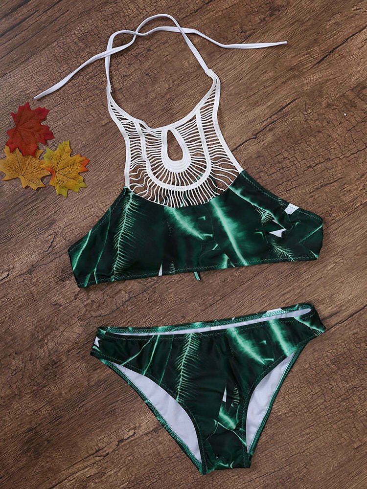Casual Outfits Y2k Wireless Print Bikinis Crochet Halter Set – Outfit Ideas