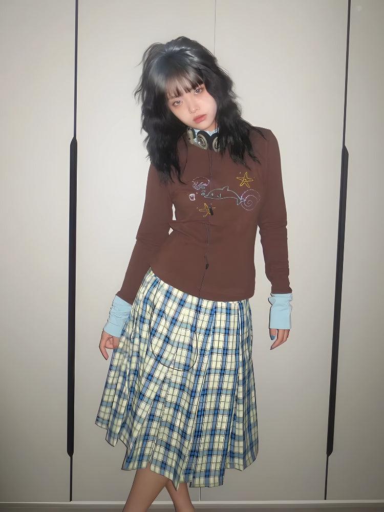 The Y2K Dolphin Turtleneck Top brings back early 2000s nostalgia with its playful sea life graphic and retro aesthetic. Designed with a fitted silhouette, layered sleeve details, and a soft, stretchy fabric, this top is perfect for casual and streetwear-inspired outfits.