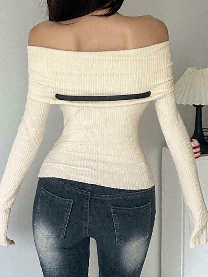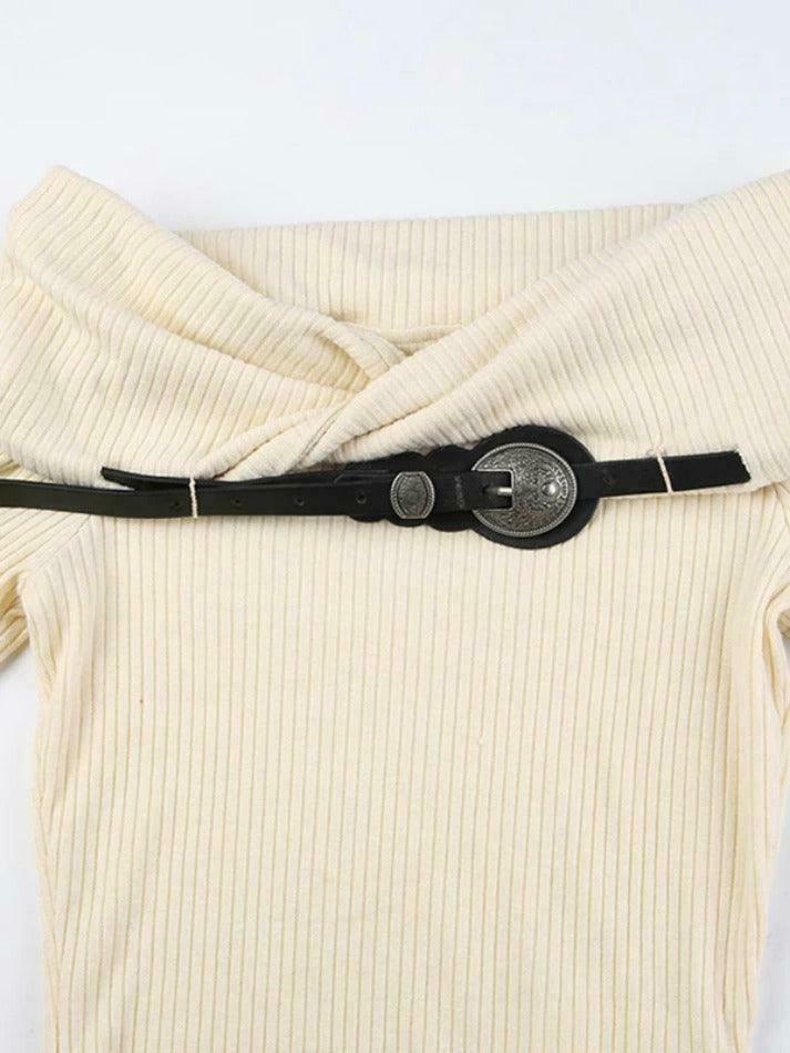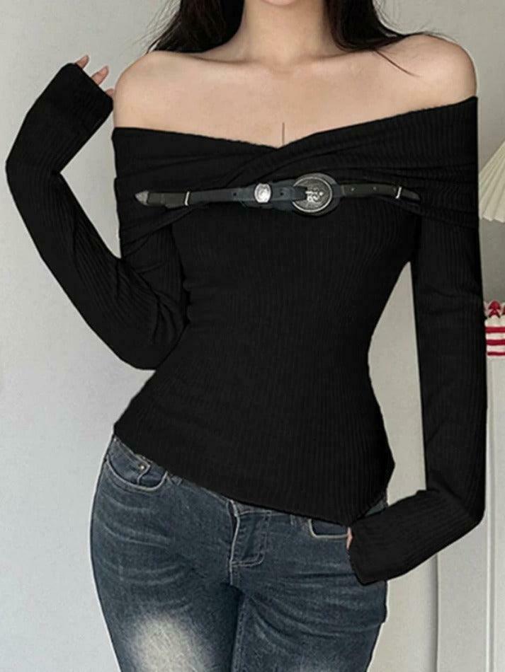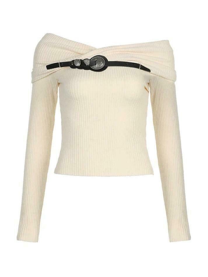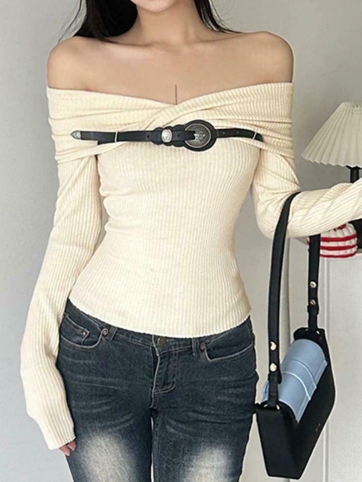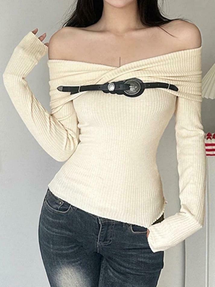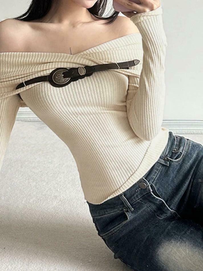 Casual Outfits Y2k Crossover Off Shoulder Belted Knit Ter – – Outfit Ideas