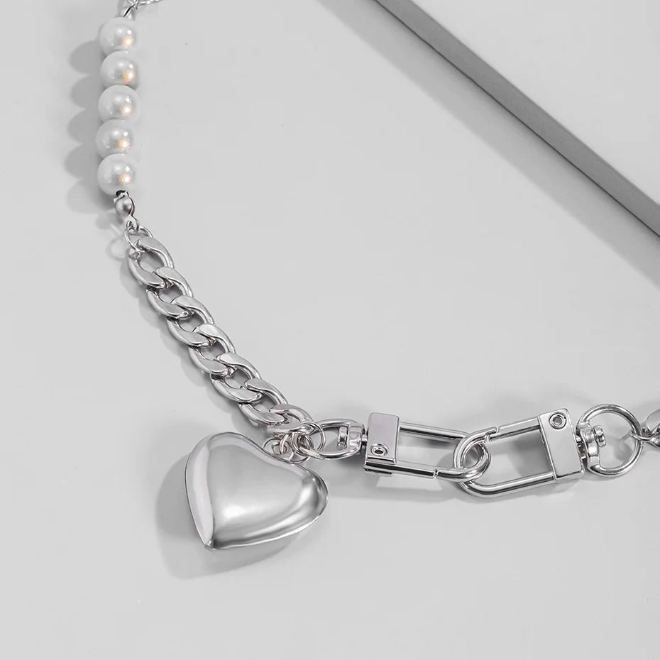 Y2K Heart Chain Beaded Necklace