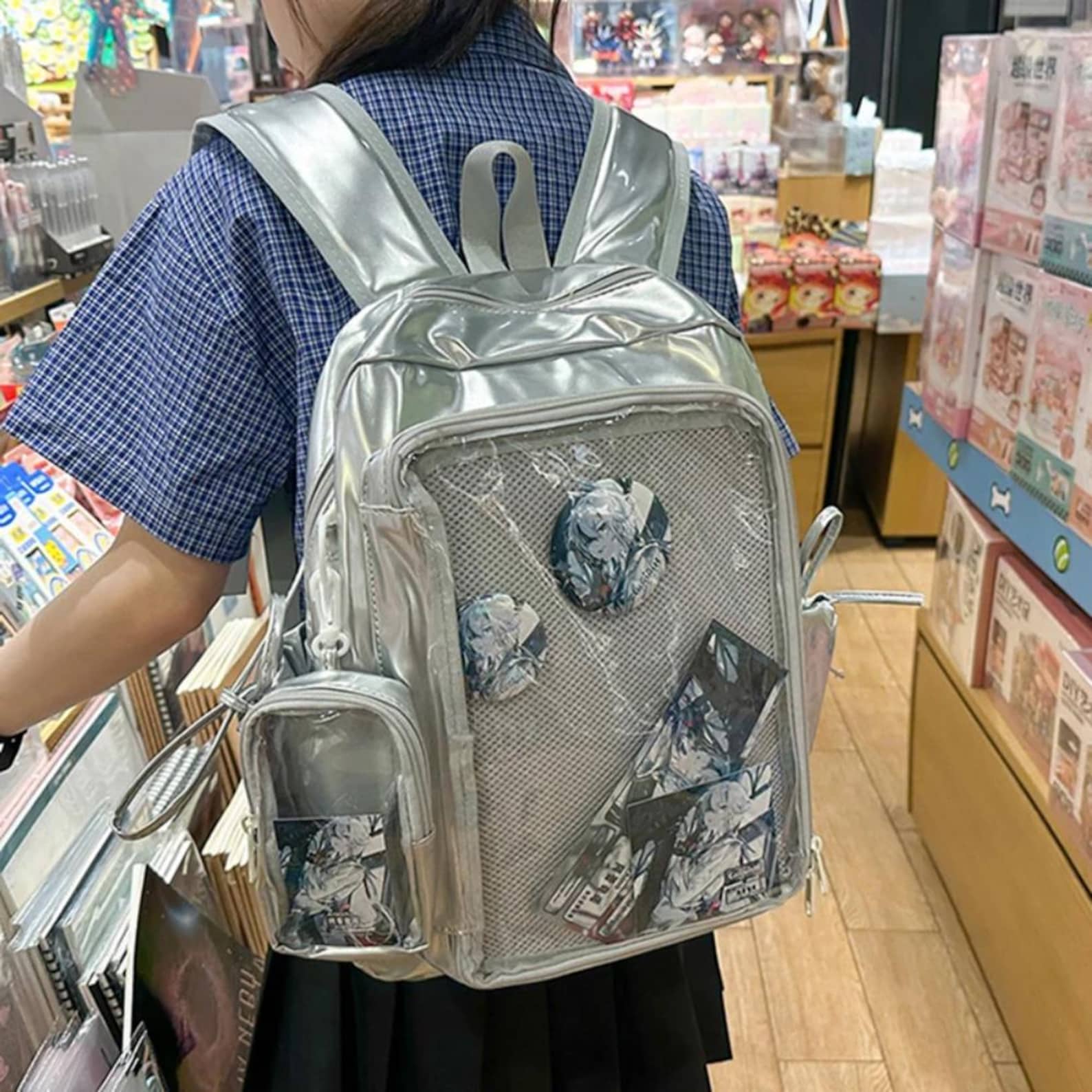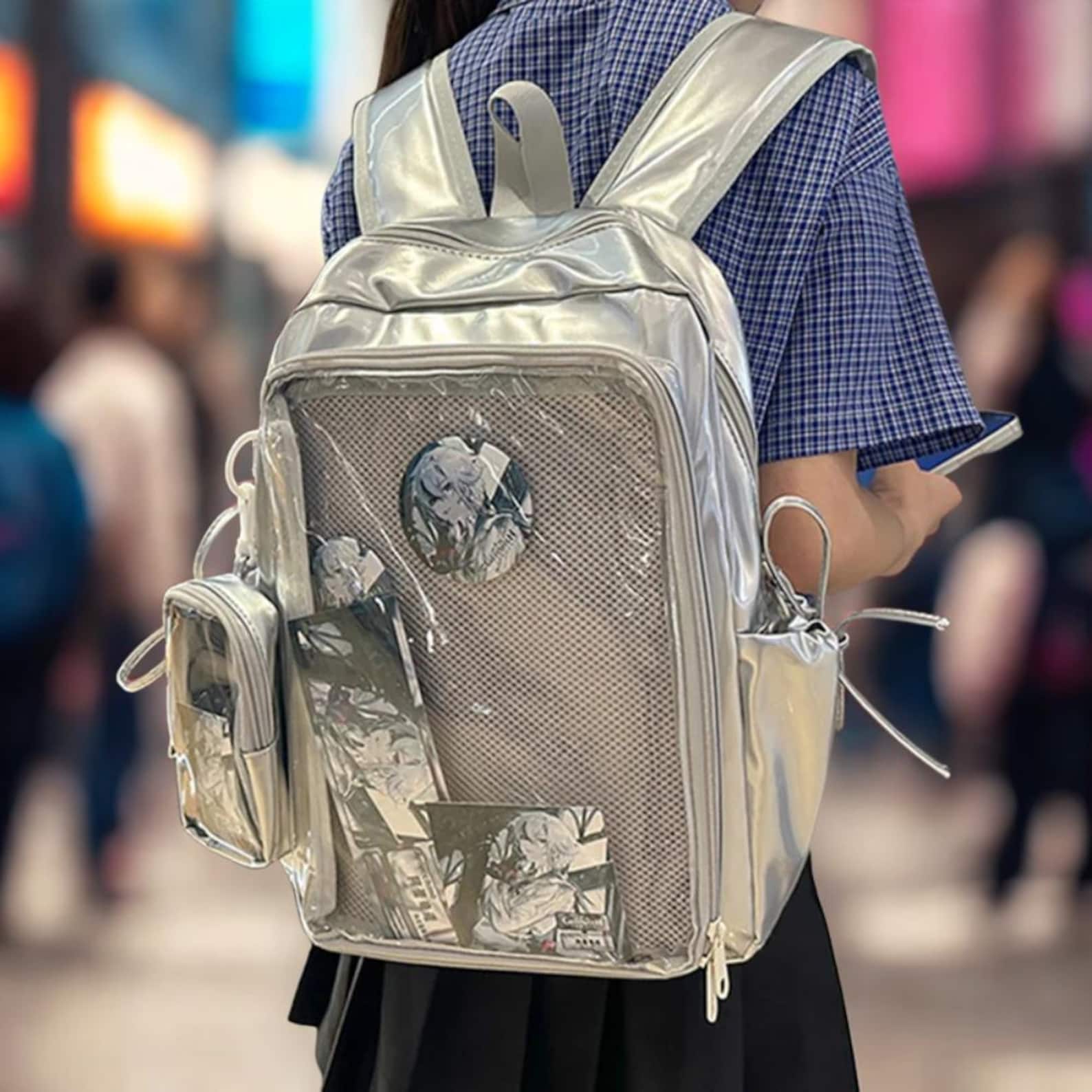 This Y2K Ita Backpack is designed for women and students who love anime-inspired fashion, kawaii style, and unique self-expression. With a large transparent display pocket, it’s perfect for showing off your pins, charms, photo cards, or anime badges, while carrying books, essentials, and more.