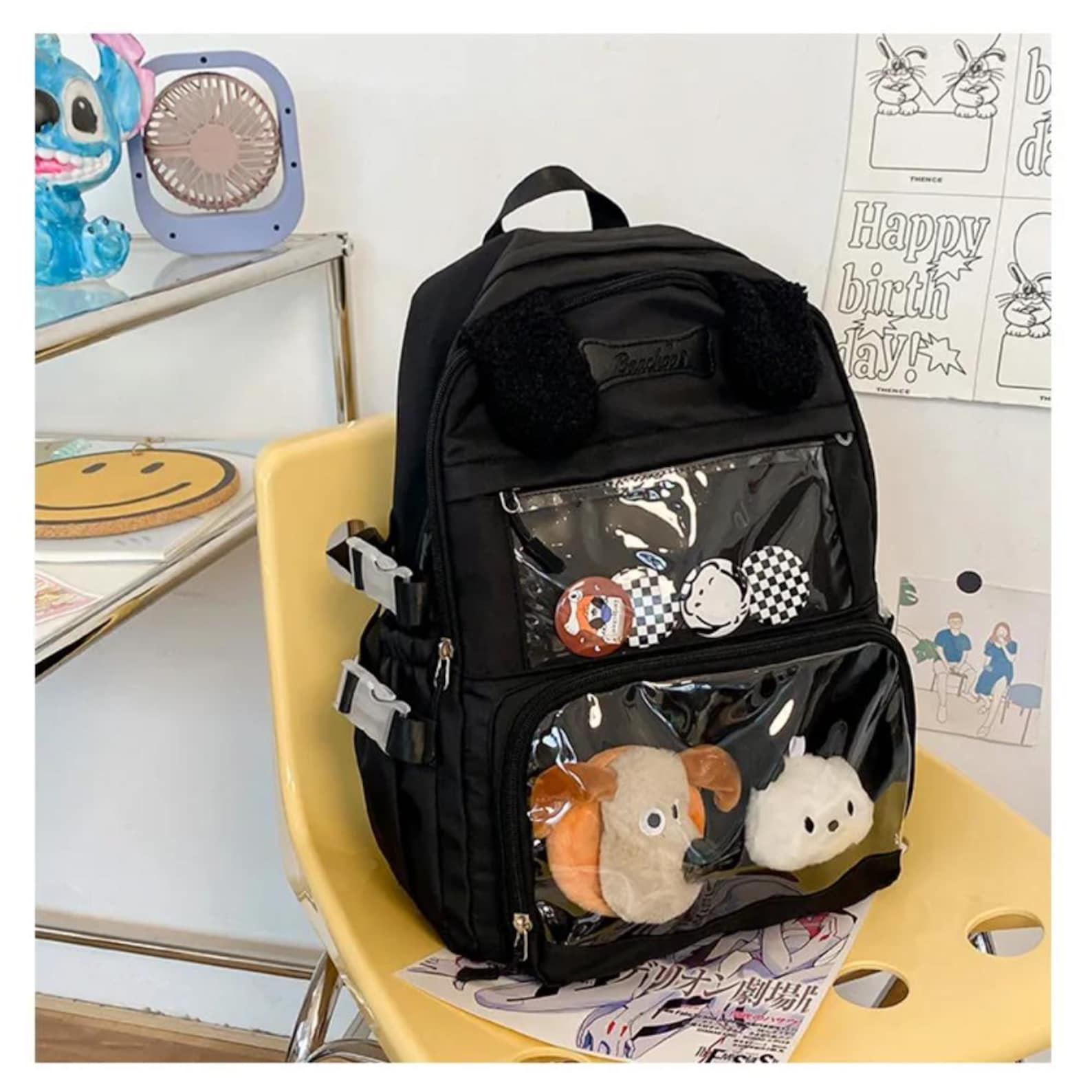 This Y2K Preppy Kawaii Ita Backpack is designed for teenage girls, students, and women who love Japanese-inspired fashion. Made from durable nylon with a transparent PVC display window, it’s perfect for showcasing your pins, charms, photo cards, or plushies, while keeping books and daily essentials secure.